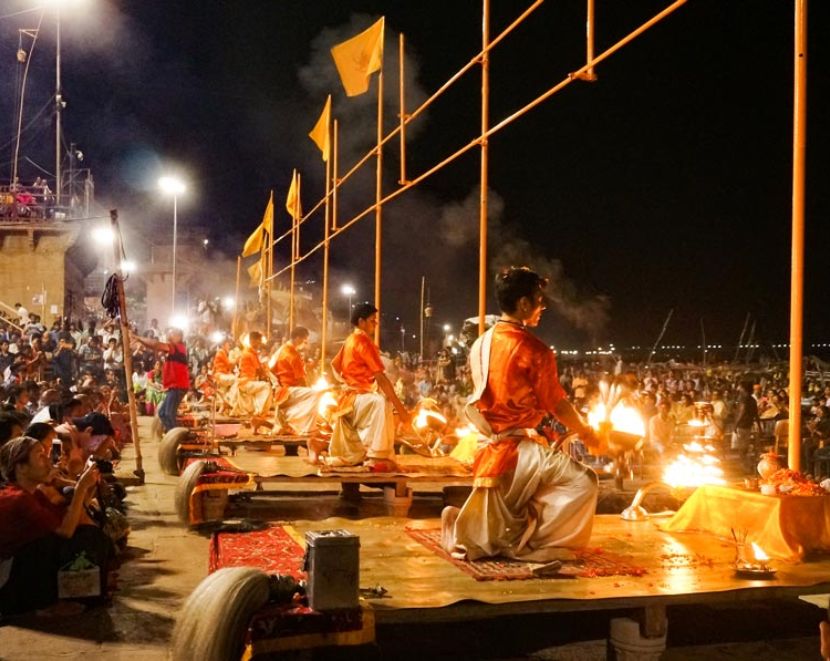 Upon your arrival at the Varanasi airport or railway station, you will be met by our representative and transferred to your hotel. Spend your first evening in the spiritual capital of India by heading to the ancient riverfront of the Ganges. As the sun sets, witness the world-renowned Ganga Aarti at Dashashwamedh Ghat, a mesmerizing ceremony involving rhythmic chanting, incense, and massive brass lamps. You can enjoy this spectacle from the steps of the ghat or from a boat on the river, followed by a walk through the bustling local markets for souvenirs and traditional street food.